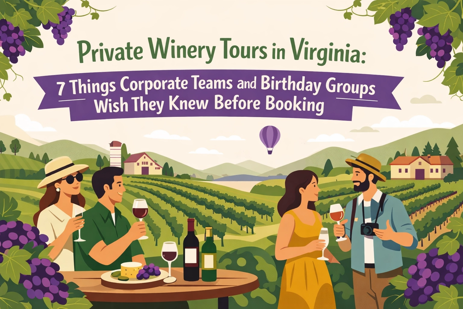 Private Winery Tours in Virginia: 7 Things Corporate Teams and Birthday Groups Wish They Knew Before Booking admin February 7, 2026 Planning a private winery tour in Virginia sounds amazing in theory, rolling hills, world-class wines, and quality time with your