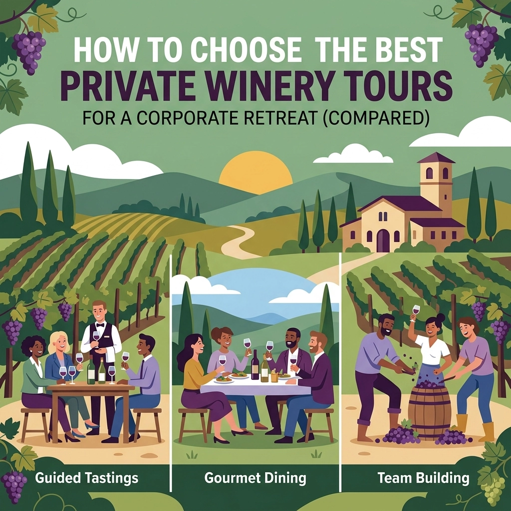 How to Choose the Best Private Winery Tours for a Corporate Retreat (Compared) admin April 6, 2026 Planning a corporate retreat used to mean booking a bland hotel ballroom, ordering a few trays of lukewarm catering, and