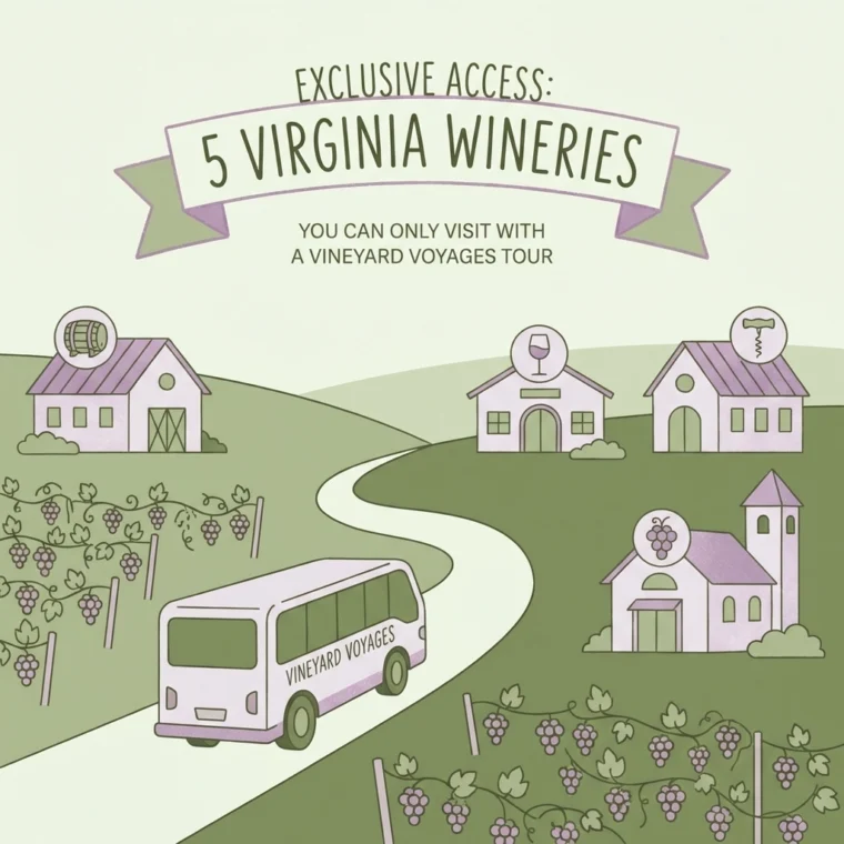At Vineyard Voyages, we've spent years building relationships with Virginia's most exclusive winemakers. The result? Access to places you simply can't visit on your own. Let's pull back the curtain on five incredible wineries that make our guided tours truly special.